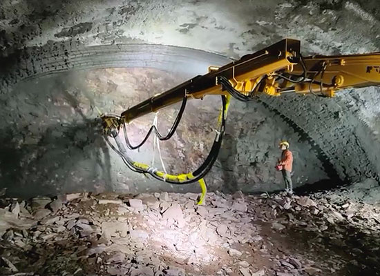 2、大型濕噴機(jī)臺(tái)車采用濕噴工藝,能使混凝土的附著力更強(qiáng),同時(shí)均勻度和密實(shí)性更高,能充分保障混凝土施工的質(zhì)量。